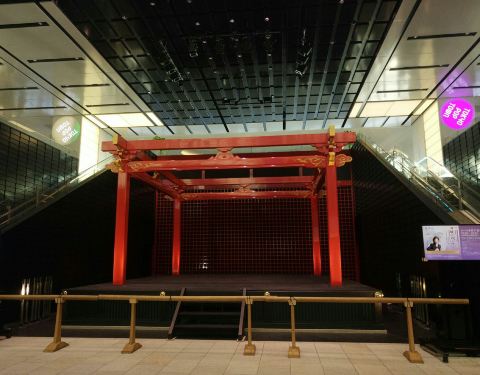 4楼随便拍了一些街景,没有模特,所以带了闺女~ 红色背景是一个舞台,白天这里有日本传统演出。后面的树是假的,但是会随着季节变化。