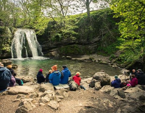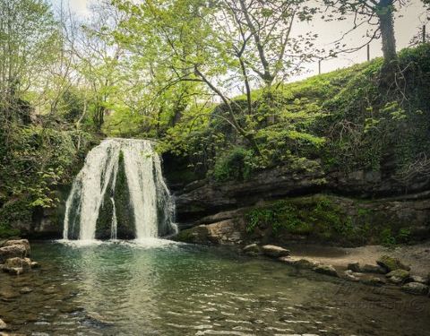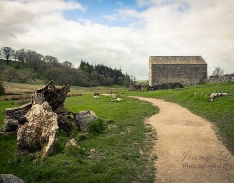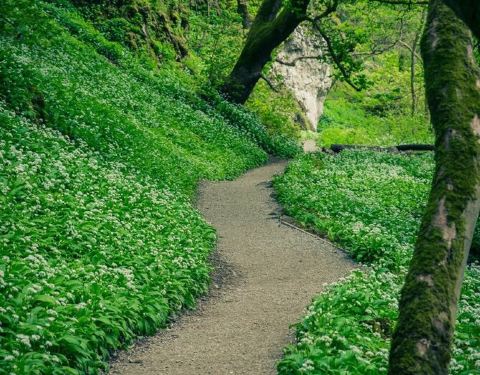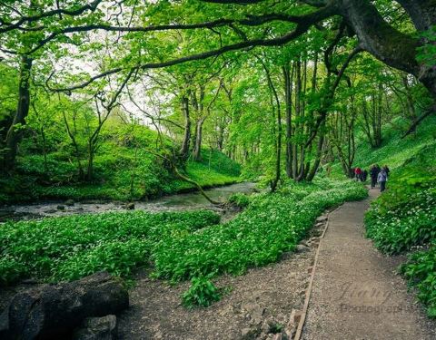 Malham Cove 12 英里徒步(英国约克郡) 第一段: Malham 到 Janet''s Foss. 从停车场出发,过小石桥后经过一段田园小道,就到了Janet''s Foss, 这里有遍地的野韮菜,飘来阵阵清香,瀑布和小河的流水加上轻风吹动的树叶为小鸟的歌声奏起了大自然的交响曲。面对着瀑布小休,忘记了时间,忘记了这才是第一站.
