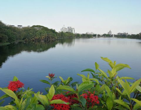 然后直接回到“天堂公园”(那空沙旺公园),里面的湖水宽广,岸边绿树成荫。里面还有公主到访的照片