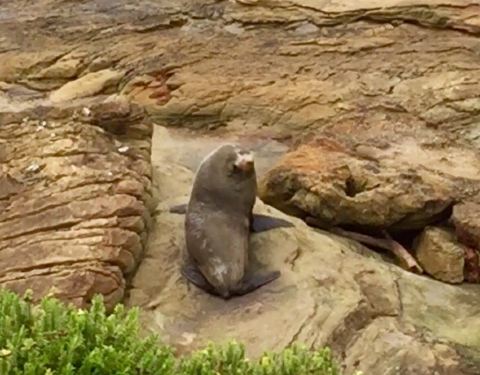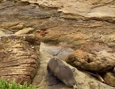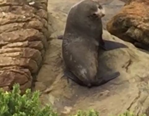 ...re reserve的凛冽海风下,小海豹豪不惧人略有些好奇,躲在突起岩石后收拢成一团避风晒太阳在shag point nature reserve的凛冽海风下,小海豹豪不惧人略有些好奇,躲在突起岩石后收拢成一团避风晒太阳。