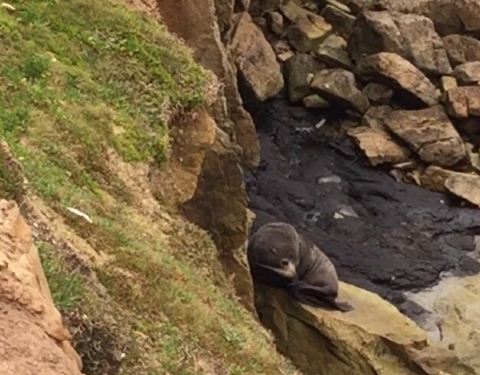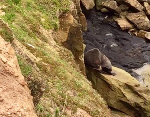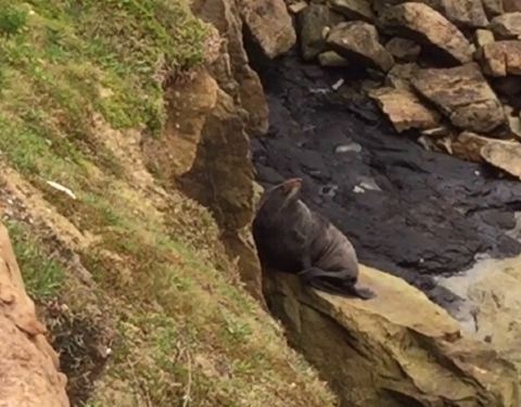 在Shag point的自然保护区中,照片拍的少,视频多了点,游人走在台地上,小海豹们躲在峭壁之中,之间还是有一点距离。