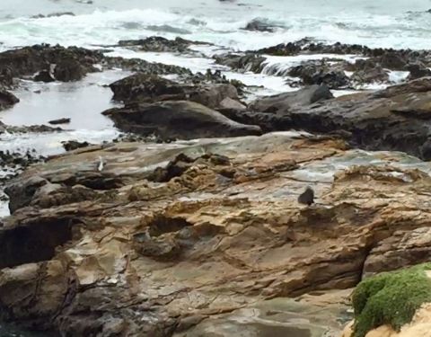 在shag point nature reserve海风较大,shag海角崖地与海豹们还是有一定距离,没有基础设施和步道还是有不少人下到了崖地,貌似在钓鱼还采鲍鱼的。我们游客只能拍拍照,拍拍旅拍。 以下的照片是旅拍的截图。