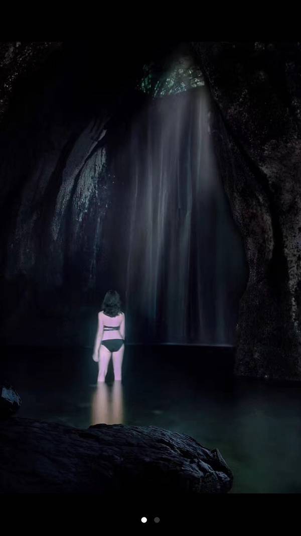 这个瀑布之前是在网上看的,结果我们去完天空之门之后,天色渐晚。而它就在回乌布的中途。我们还在犹豫要不要去。因为不想留遗憾,还是去了。晚上八点我们到的时候天已经黑了。工作人员早已经下班,我们用手机打着光下去。看上去很诡异是不是?我们胆子比较大,脱了鞋子涉水步行了几百米,终于看到洞穴瀑布。估计敢晚上去打卡的也没谁了。