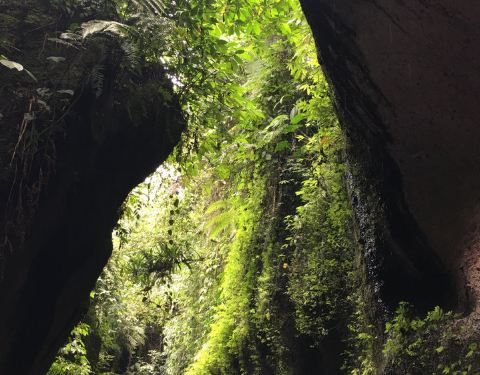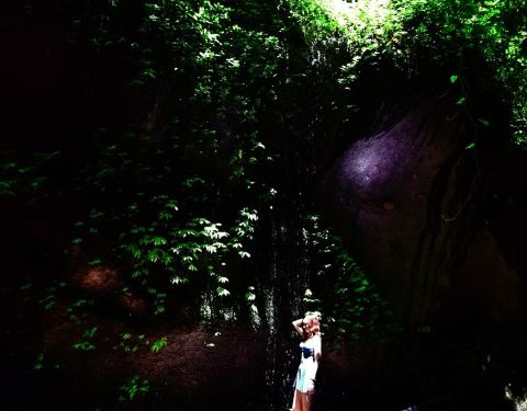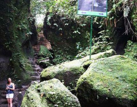 巴厘岛一日游来的景点,很小众,人不多。 到景点口,沿着waterfall的路牌一路走下山,台阶蛮多的,关键每一格都很高,走到最后腿都软了。 下山后,要走一点水路,钻过一个山洞,就是瀑布,瀑布很小,喜欢拍照的,可以趟水进去拍一张。 整体可玩性一般。