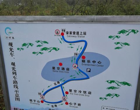 【综述】 一定要花开季去!!!(9月是格桑花开)我10月去的,光秃秃一片!步行一大圈什么都没有,各景点距离很近,但什么也看不到,出于安全考虑外围都被圈起来了,能看到的只有树,想向下望山崖视野都被阻挡了! 【门票】 无。 【住宿】 星空酒店,盖上唯一一家酒店。附近的村庄里没看到住宿。 即使是淡季价钱也不低,旺季会高出好几倍! 酒店也提供帐篷租赁,有露营区域。不同帐篷价格不同,详询酒店前台。 【饮食】 盖上有私人摊贩和餐厅。 酒店也提供烧烤台租赁。前提是否必须是酒店入住客人,详询酒店前台。 【游玩】 游玩时间:盖上1小时。 路程时间:自由掌控。 ~推荐路线~⬇⬇⬇⬇ 洪安边城-45道拐-川河盖 ~推荐方式~⬇⬇⬇⬇ 自驾、缆车、徒步。公共交通目前没有覆盖到45道拐,这样你只能到盖上看风景不值。 盖上没什么可玩的,可以作为回程休息用餐的场所。 自驾者建议在盖上野餐。前提是在花开季节,否则就别去了,没的看。离开时注意收拾干净,请保护环境! 最好的风景不在盖上,而在去往的路上,这条路俗称“45道拐”,是秀山洪安镇平马村到涌洞乡川河村的公路,叫平川公路,被誉为“重庆最弯”公路。2018年还举办过汽车拉力越野赛,所以开车路上一定注意安全,但风景真的棒。每道拐都有名字,路上会有标牌,风景也都不同,可以停车拍照,下车注意安全,也注意不要阻挡后方车辆。 【交通】 ##景区游客中心距离盖上及星空酒店开车还有一段距离,所以那里并不是你的终点## (根据推荐方式排序) 1、自驾:路线自行导航。(走45道拐要从洪安上来); 2、缆车:秀山县城经秀川路(旅游快速通道)到达,可单程可往返; 3、徒步:洪安-川河盖,导航步行时长6小时; 4、公共交通:重庆-秀山-龙池-川河盖。 ⭐火车或客车,重庆-秀山,客车时刻表和价格可以在“车次网”上查询,仅供参考。 ⭐秀山汽车总站-龙池,进站直接到候车场里找去龙池的车,上车买票9元,可扫码可现金。车程40分钟。 ⭐龙池-川河盖,下车后同一地点,坐农村客运或摩托车上盖。车程1个小时。 ~农村客运(停在路口的绿色面包车,没有固定运营时间。价格淡季20元/人,但要坐满才走,时间不定,有可能等1、2个小时,想下盖就得有人上来,如果没有人上来就下不去了。除非给司机打电话专程上来接你要120元) ~摩托车(只能坐1人,随时出发,价格淡季40元/人)