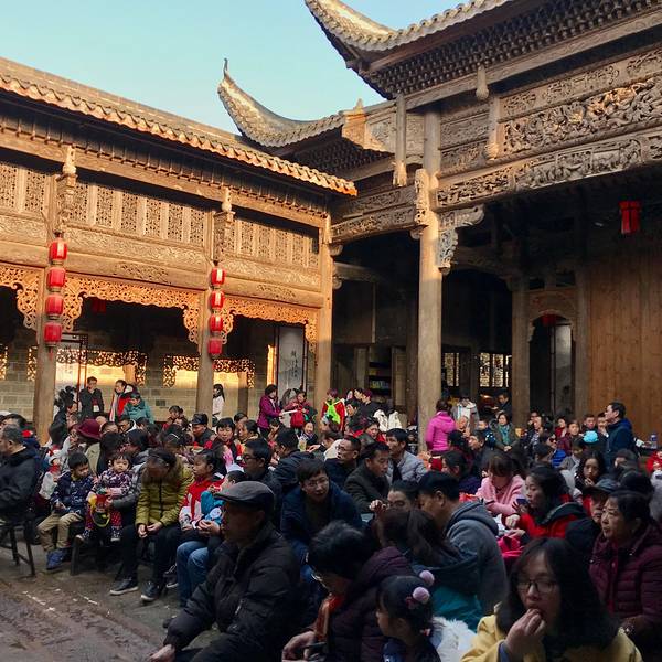 到达2018年8月28日正式对外开放的新华联铜官窑古镇,据说以海上丝绸之路文化、铜官窑陶瓷文化...长沙自驾约1小时🚗,到达2018年8月28日正式对外开放的新华联铜官窑古镇,据说以海上丝绸之路文化、铜官窑陶瓷文化和湖湘文化为魂,融历史文化、演艺、民俗、科技、美食休闲、亲子游乐、特色商业于一体的全域旅...长沙自驾约1小时🚗,到达2018年8月28日正式对外开放的新华联铜官窑古镇,据说以海上丝绸之路文化、铜官窑陶瓷文化和湖湘文化为魂,融历史文化、演艺、民俗、科技、美食休闲、亲子游乐、特色商业于一体的全域旅游新景点。我们从北门楚街停车场进入,还有很多地方未完工,而这离景区服务中心有一段距离,楚街上人少,街上的店铺尚未装修,唯有一家饭店热闹非凡,环顾四周别无二家,时间也差不多到了该吃午餐的时候了,点了几个菜店老板就把我们给忘记了,等后来人都吃完了,我们还没上菜,悲了个催,不过味道还不错,乡下家常菜的味道,弥补了之前的愤愤,看着爸妈吃得高兴,我们也跟着欢喜,开心最重要,其他的就不计较了哈。出饭店向右沿着”楚街“走,两边的古式建筑看上去都是门面,里面空荡荡啥都没有,据说卖很贵一平,反正我是买不起。走着走着独有一栋古式高楼临街而立格外引人注目,高大威猛,榫卯纵横交错,不由得想起了《藏地密码》里的神秘又复杂的悬空寺,爸爸说那是“九层妖塔”,不过妖塔之下一派祥和景象,当我们来到🌸樱花大道,便已经走到了景区的正门,临湘江一艘帆船吸引了眼球,这就是“黑石号”,1998年,在印尼勿里洞海域被发现打捞,其中被打捞的文物瓷器中就有56500件来自长沙窑。原来长沙窑在唐代已经声名远扬了,远销东南亚、东亚、南亚、南亚、西亚、东非等29个国家,这是我之前参观铜官窑遗址所未曾了解到的信息。进入服务大厅,左边是售票区,大厅内有自助购票取票区,检票口有工作人员派发导游图,并热情地讲解指导如何游玩,让人感觉非常好。我们在楚街一路走过,没有发现验票口,还以为不要票呢,原来这里别有洞天啊!票是闺蜜友情奉送的,但标价平时200/人,节假日300/人,说实话有点贵了,目前还在继续维护修缮中,会有折扣,以后就不知道了。因为我们下午才进到景区,根据工作人员的提议,先去剧场观看黑石号特级号,人实在太多了,看了一堆后脑勺,但音响打斗效果是很不错的,拼命地举起手机在制高点拍了个视频,哎呀我的妈妈,手都举断了😝,特技表演非常精彩,寒冷冬日水中表演的演员们的敬业精神令人敬佩不已。随着大批人流走出黑石剧场,下次绝对不在节假日去了,因为会有旅行团,旅行团!对于喜欢玩又喜欢安静的我来说,旅行团的小旗很恐怖的,或者上午早一点去,错开这些人群。黑石剧场的对面有一座非常精美,雕梁画栋的建筑—花鼓戏楼,远远的看上去就非常醒目,花鼓戏楼是新华联铜官窑古镇28个老宅中的精品,它的独特处在于雕梁画栋的精美别致。屋顶天花及梁上所有雕刻均为十分考究的深浮雕, 无论人物形象还是花纹修饰 ,均一丝不苟。尤其值得一提的是戏楼入口处和舞台中央的藻井一颗螺钉均未使用 , 采用中国传统建筑的榫卯结构拼合而成。花鼓戏花鼓戏,曲调轻快流畅,言语泼辣,弹唱逗乐之中表述着人生常态,平凡而有趣的生活方式,听者含笑,唱者投入,文化传承在铜官古镇做得很好值得赞赏。精美雕梁,古朴风韵中停歇片刻享受地方戏曲的韵味,这应该是铜官古镇的又吸引人的特色。泡上一杯芝麻豆子茶,享受最市井的人文气息老爸老妈看得乐哈哈的,笑一笑十年少,愿你们每天都这么开心🍀🌸🌹😊出了花鼓戏楼已是黄昏,转弯后路过“豆腐铺”来到了“曾氏祠堂”。据传,靖港战败后的曾国藩投水被救。曾,短时间休息于曾氏祠堂。祠堂内儒家思想家曾子的塑像,天井两侧墙壁挂有“忠”、“孝”、“节”、“义”四块砖雕, 传为朱熹手笔,是曾氏宗族“大孝尊亲”的行为准绳。我跟老妈在对面的特产店里流连,爸爸对这个曾氏祠堂特别感兴趣,喊了我们好几遍,哈哈,这就是男生女生最大的区别么?趁机照了一张全家福,老爸有没有文艺范?对面的工艺品店里售卖的是小时候常见的竹编制品,现在已经很少有人用了,座位文化传承的一部分,也出现在铜官古镇中,老板说,现在的人不用这些纯天然的东西了,编织的都是一些老人,年轻人不学习这些,因为耗时又挣不到钱,看着精致的竹编作品,有些失落,这些不引人注目的东西会不会经年之后消失呢。。。。看到铜官驿,想起了木心的《从前慢》里很经典的一句话:从前车马很慢,书信很远,一生只够爱一个人。老爸对老妈的爱情就是如此,爸爸调皮机灵,老了也是老顽童,妈妈从来都是含笑埋怨,却眼角透着幸福古时传递文书用车称为传,以马曰驿,步行称邮,统称作置。《湖南 省志》记载:铜官驿,在长沙县北九十里,明置。 铜官驿建有正堂、驿丞房、驿卒房、马夫房、签押房、账房等,游人可借助VR等现代科技体验一-番古代邮递工作的情形天渐黑了,我们走进了铜官窑博物馆群,由5个馆组成,铜官窑博物馆里介绍了铜官彩窑的历史、制作、外销等一系列历史,展示了大量私人收藏的彩窑。这个博物馆与铜官原址博物馆不是同一个,但所展示的瓷器件件精美。男同志可能都爱看博物馆,老公和老爸看得特别认真,不肯出来。新华联博物馆群有5个馆组成