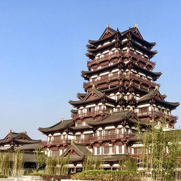 🍀我们从北门楚街停车场进入,街上的店铺尚未装修,独有一栋古式高楼临街而立格外引人注目,高大威猛,榫卯纵横交错,不由得想起了《藏地密码》里的悬空寺。