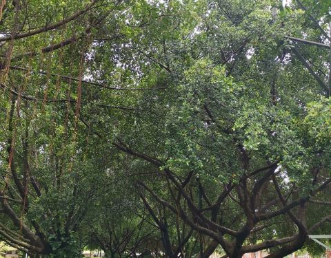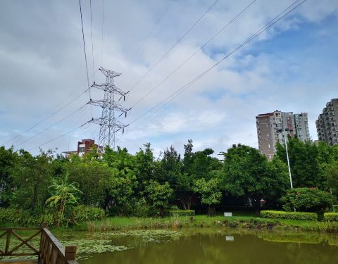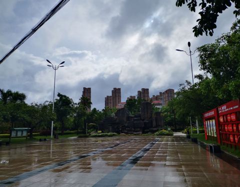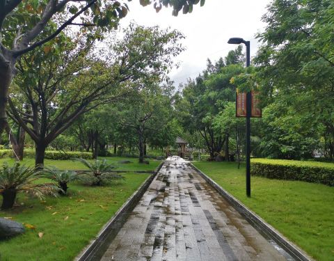 这是角美的一家综合性小公园,有绿树,草坪,小河,小桥,有儿童娱乐设施,也有篮球场,今天因为台风,所有娱乐设备和篮球场都不开放,公园里人也不多。雨停的间隙,才看到有人进公园玩。今天有阵雨,没雨的时间不长,所以只在里面转了一圈,雨后公园里空气不错。