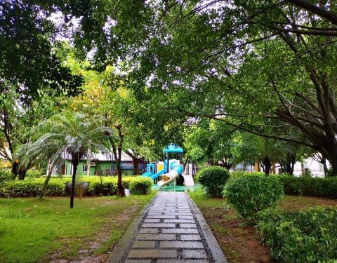 这里是位于角美镇中心位置的一个公园,在角美小学旁边,公园内有假山,人工喷泉,人工湖,草坪和热带树木,是当地居民男女老少散步健身的好去处,有不少社区健身设施免费的,也有收费的儿童游乐设施。晚上很多当地居民前来跳广场舞,打球,聚会闲聊。很是热闹。
