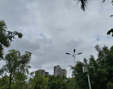 这是角美的一家综合性小公园,有绿树,草坪,小河,小桥,有儿童娱乐设施,也有篮球场,今天因为台风,所有娱乐设备和篮球场都不开放,公园里人也不多。雨停的间隙,才看到有人进公园玩。今天有阵雨,没雨的时间...