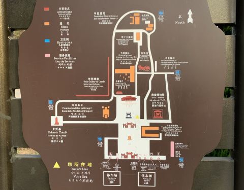 一般性意义上的殷墟景区,大家主要去的地方就是这里“殷墟宫殿宗庙遗址”,这里面能参观的景点比较多,也比较的集中,重点参观点一定要多花点心思去欣赏。 这里面有多大/哪一些是一定要去的/大概需要多久的时间/如果没有讲解者我们应该怎么看?把我的个人经验分享一下。 •位置:安阳市殷都区殷墟路北段1号 •交通:公交殷墟博物苑站,下车以后需要再走5分钟才能到大门口 •门票:¥70.00(可以用于殷墟宫殿宗庙遗址和殷墟王陵遗址) •开放时间:8:00-18:30/8:00-17:30 •推荐游览时间:半天 旅行tips:个人推荐在售票处租一个讲解器(¥20.00),这样走到哪里他都会定位到你在的地方,然后自动进行讲解,这样有助于你的参观和了解其中的含义;或者请一个讲解员,旺季比较多,淡季不一定会有。 殷墟宫殿宗庙遗址一共由8个重要点组合而成,分别是殷墟博物馆、妇好墓、车马坑、甲骨碑林、甲骨碑廊、甲骨窖穴、甲乙基址、商代历史文明陈列馆。 每一个区域都非常值得参观,我首先去的是博物馆,里面都是这边出土的陈列物,他的设计非常有特色,是地下墓形式的博物馆,如果能俯拍这里,你会发现他是一个迷宫形式的墓,设计非常有特色;甲骨文区域更是一定要去的,虽然看不懂上面的内容,但是他很有趣,不得不感叹文字的魅力。一定要租一个讲解器,一路走一路听讲解,他的讲解词文言简意赅,让我对于每一个区域都有了更好的理解,认真的看这里的一砖一瓦、一字一句,半天时间还是需要的。