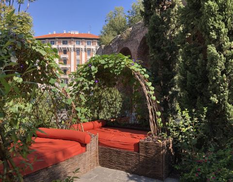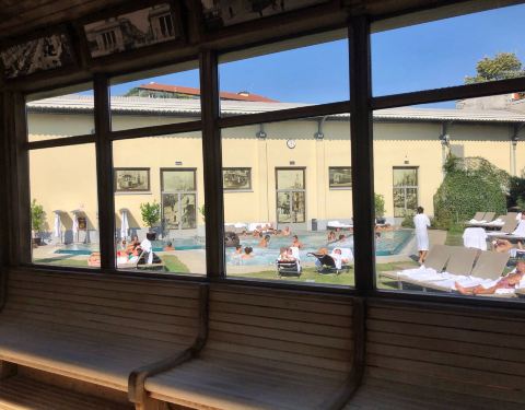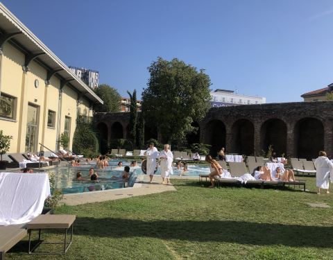 在米兰行程最后一天,走不动了[偷笑]找了个市中心的古迹温泉,有吃有喝,又泡又晒太阳,舒服到不得了[得意][得意][得意]
