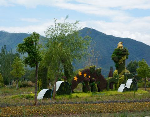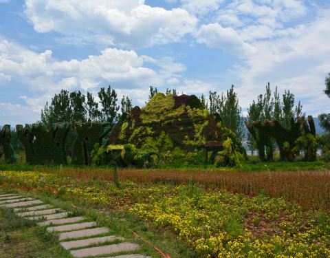 梦寻花海公园很大,如果步行游览需要一天,建议可以乘景区的游览车,如果确实想步行,可以在青龙寺和月亮湾两个景点之间走走,这段路大概都需要走两个多小时。