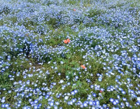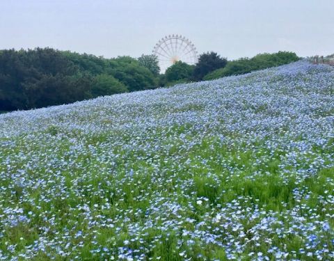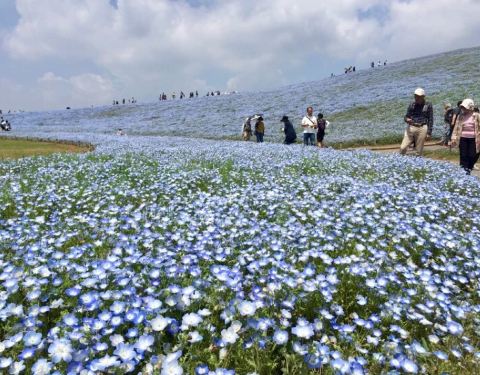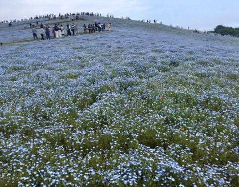 ひたち海滨公园就是常陆海滨公园,周边有个著名公司发音就是ひたち,也就是日立公司了,有趣的日语。音读一样,汉字写法完全不一样。 4月中至5月初当季的就是蓝花。