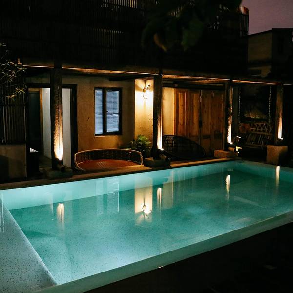 晚餐本想随便吃一点,所以我们边逛边找,经过了笔架山洞隧道,隧道里的墙上都是涂鸦。逛着逛着居然逛到了大众点评美食排行榜第一的六年私厨,宾馆前台的小哥哥也推荐了这家,味道也确实没有辜负我们的期待~吃过晚饭后小伙伴们还要去小吃街吃夜宵,我们体力不行了就先回宾馆睡觉啦~晚上的泳池也很漂亮