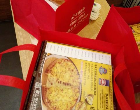 pizza到收手还是热乎乎的,送货速度很快,每次都是很满意,榴莲pizza是他们家最好吃的一个。