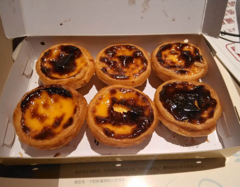 当然,已经是连锁店,很多地方都有,但始终不及路环那边的老店来得有特色。我买了葡挞和一个四方的朱古力块蛋糕,葡挞不过不失,出乎意料的是朱古力蛋糕很。。。