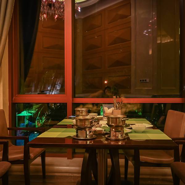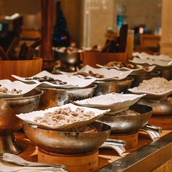 晚餐我们选择了酒店的盛宴西餐厅,因为听说里面是海鲜自助小火锅。西餐厅从酒店大堂进去,也是每天早上吃早餐的地方。餐厅继续延续着这家喜来登空间巨大的特性,显得特别宽敞而舒适。西餐厅中摆出丰盛的海鲜小火锅食材,锅底有椰子鸡汤锅、海鲜汤锅、麻辣汤锅和番茄锅,一人一小锅,想要吃什么可以根据自己的口味和喜好随意在食材区挑选。自助形式能给用餐者多种选择,食材新鲜,种类多样,海鲜和肉品适合在热乎乎的小锅中翻滚。一边吃着海鲜锅,一边还能欣赏现场LIVE表演。一把吉他,一个麦架,欢快的旋律和优美的女性嗓音,营造出随性自然的用餐环境,让你能在享受美食的同时耳朵也能饱餐一顿。