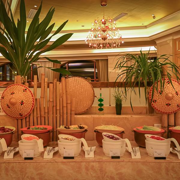特色全日餐厅-盛宴,选用新鲜食材烹制琳琅美味,您可随心选择自助餐或零点美食,一饱口福,夜晚还有年轻活力的乐队带来现场精彩表演。