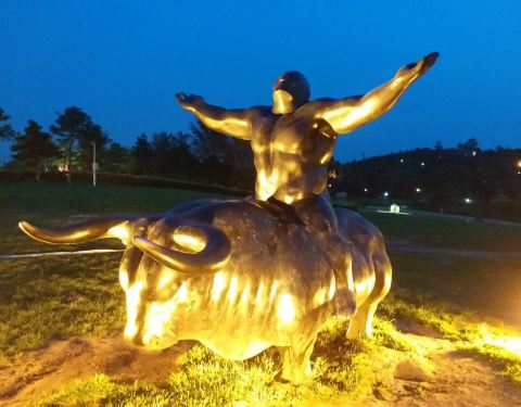 莫子山公园,目前作为沈阳市的网红景点,不仅仅因为它的夜光跑道,还有全国各艺术院校,捐赠的雕塑作...