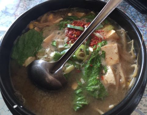 因为是早上十点左右去的 很冷清 服务员也不爱接待 什么菜都不给做 只让我们点汤饭 不吃狗肉只能点石锅拌饭 但是味道还不错 两份汤饭一个石锅拌饭 一个年糕 两个露露 一共92