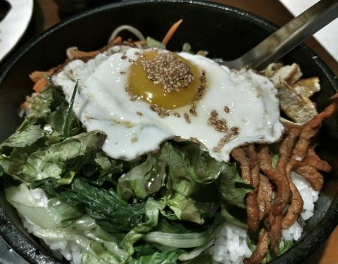 ...饭 不吃狗肉只能点石锅拌饭 但是味道还不错 两份汤饭一个石锅拌饭 一个年糕 两个露露 一共92