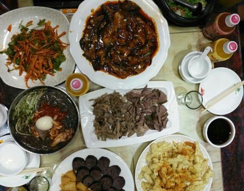 很有人气的一家吃朝鲜美食的餐厅,生意真心好,餐点过去常常需要等位。招牌的狗肉,味道很好,可以点刀切狗肉(带皮),狗肉汤饭和手撕狗肉。不吃狗肉的朋友可以选择吃其他朝鲜菜,冷面,辣白菜,五花肉,锅包肉和凉拌明太鱼都相当够味。价格也实在,性价比相当高的餐馆。