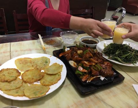 很有人气的一家吃朝鲜美食的餐厅,生意真心好,餐点过去常常需要等位。招牌的狗肉,味道很好,可以点刀切狗…
