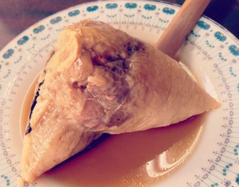 我觉得吧,这棕子好大啊~粽子上淋上醤油膏的吃法蛮奇特的