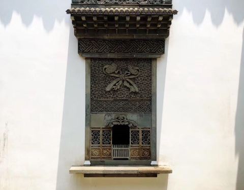 ...通向西侧花园的是桃门 雕:正对东关街的大门上的砖雕、花厅走廊天花板上的“五福同寿”板雕非常精致