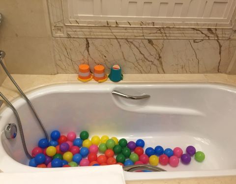 非常适合三口带着孩子一起游玩。屋里设计很好,也很大,洗澡里有球球和电视。希望提供加湿器吧