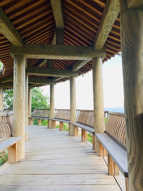 景区:景区门口有工作人员会测体温,然后继续开车往里开一段是售票处,再往前开1分钟就到了停车场,到这里停好车,可以选择步行和乘坐摆渡车两种方式上山顶,摆渡车30元一个人往返,我们选择的是坐摆渡车。这段上山路比较窄和陡峭,弯路很多,私家车不熟悉路线确实不好开,步行会更累。司机师傅在展示了高超的山路爬坡技术后,把我们送到了山顶。