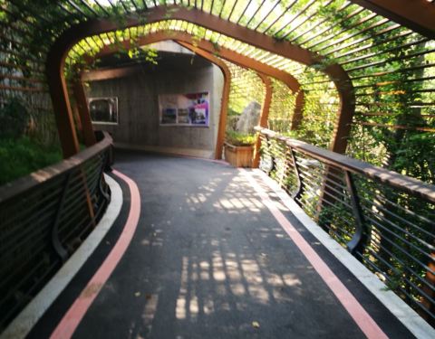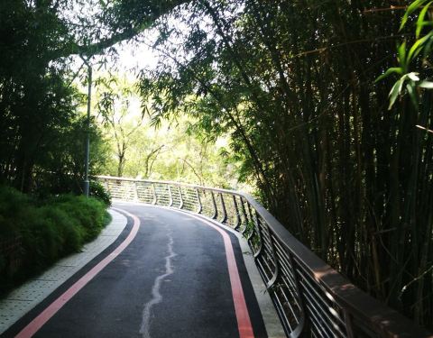 ...来,坡道适合行走,跑步,慢行都很适宜,绿萌遮天,一路上也不晒,刚开放不久,行人很少,郊野公园嘛