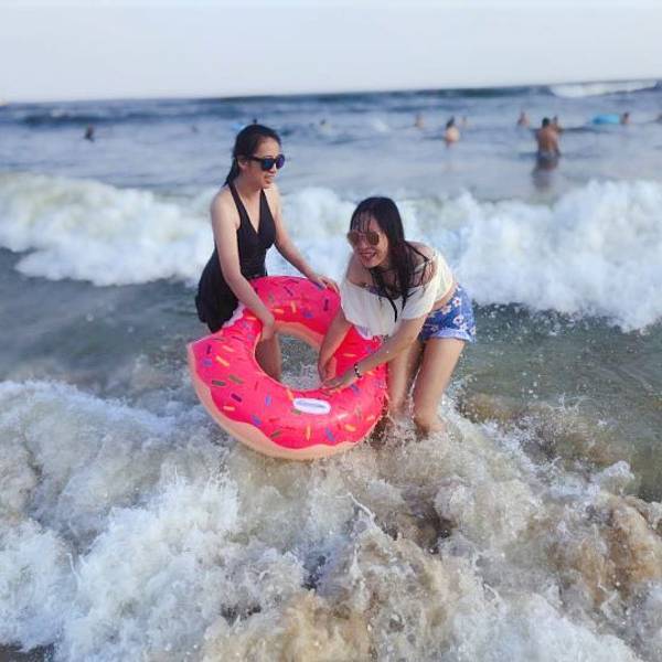 好玩,建议在外面租游泳圈5元/个,景区里要20元/个,海里可以游泳的区域比较小好玩,建议在外面租游泳圈5元/个,景区里要20元/个,海里可以游泳的区域比较小。水上乐园有滑梯,还有漂流水渠可以坐在泳圈里慢慢漂。大喇叭的气垫船还要另外花钱租。