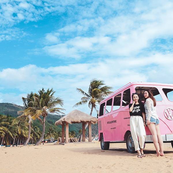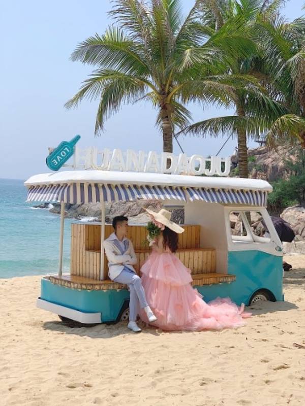 岛上人很少,基本上都是拍婚纱照的新人,沙滩上布置了很多景可以给大家拍照,教堂、粉色巴士、茅草屋、秋千之前在网上看到一组海边粉色小巴的照片,特别心动,知道这个地方之后,就愈发心动了。呆呆岛,可爱至极的名字,毫不犹豫的,就把这个小岛列入了此次行程的重点。呆呆岛位于南湾猴岛上,实则上是属于三亚附近的陵...之前在网上看到一组海边粉色小巴的照片,特别心动,知道这个地方之后,就愈发心动了。呆呆岛,可爱至极的名字,毫不犹豫的,就把这个小岛列入了此次行程的重点。呆呆岛位于南湾猴岛上,实则上是属于三亚附近的陵水县,适合在三亚自驾的朋友。我们包了个车前往,从三亚市中心到南湾猴岛的轮渡码头大约一个半小时,再坐5分钟轮渡到达南湾猴岛。上到猴岛上之后,有两条巴士线,一条去猴岛一条去呆呆岛。