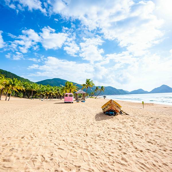 这时绝对没有熙熙攘攘的人群,也没有嘈杂的是是非非,可以静静的开心的玩,如果是带着朋友或是与同事...在海南玩儿就是海,去过海南的人也有过这样的感受,无论春夏秋冬,无论是哪个海边,都是人满为患,游个泳就像饺子下锅,破坏了原本的好心情。而呆呆岛这座鲜为人知的小众海岛,还保留着清净人少原生态的海岛风貌...在海南玩儿就是海,去过海南的人也有过这样的感受,无论春夏秋冬,无论是哪个海边,都是人满为患,游个泳就像饺子下锅,破坏了原本的好心情。而呆呆岛这座鲜为人知的小众海岛,还保留着清净人少原生态的海岛风貌。从猴岛乘坐观光车,途经呆呆岛落日沿海公路,经过20分钟的车程就到达呆呆岛了。呆呆岛同样不是很大,右侧为情人崖,左侧是沙滩,是先去打卡情人崖还是去沙滩戏水拍照,这个就依据个人的喜好了。作家冯唐口中的“中国最美的无人沙滩”指的就是呆呆岛的这片沙滩。呆呆岛的沙滩平缓,沙质洁净而柔软,可以光着脚丫、卷起裤管在这里吹着海风,慢悠悠地从这头转悠到那头,习习的海浪一波波的涌来,轻轻的拍打在沙滩上或拍打在礁石,翻起了洁白的浪花。沙滩的一边有高大的椰子树,海风吹过会发出飒飒的声音,轻轻地和着海的低语。在这里可以登山、可以戏水亦可以乘凉,或是躺在柔软的沙滩上,静静地一个人发呆放空。我更加建议上午就早早到呆呆岛游玩,这时绝对没有熙熙攘攘的人群,也没有嘈杂的是是非非,可以静静的开心的玩,如果是带着朋友或是与同事组团过来的,也可以在这里搞搞团建,玩玩椰林攻防箭、打一局真人CS或是乘坐沙滩车在沙滩上晃当个几圈,不仅自己玩得开心,还能增进朋友、同事间的感情。呆呆岛沿海沙滩上有随意摆放着的古旧的船,这些船古旧、斑驳,每一艘都有着唯美的故事,这些摆在沙滩上的古船也成了呆呆岛的一景。碧蓝的大海、柔软的沙滩、蓝蓝的天、洁白的云、高大的椰子树为背景,与这些船合一个影,也透着满满的ins风。呆呆岛的沙滩分为一号沙滩和二号沙滩,情人崖将一号沙滩和二号沙滩隔开。这些散落在沙滩上的古船又将沙滩分成了四个区域。2号、3号、4号船所在的区域为二号沙滩,2号船区域紧挨着情人崖,这里适合各种团建活动,椰林攻防箭、真人CS、沙滩车都在这里。椰林攻防箭的玩法极为有趣,两队人马身着护具在沙滩上在椰林里追逐奔跑,为护住自己的旗而努力着。椰林攻防战的趣味性不仅在先将对方的人员射落马下,还要提防对方安插在自己队伍的内奸,想要获得胜利,不是简单的射箭有准头就可以的这么简单,还要眼观六路、耳听八方,心细如发。2号船所在的沙滩,也是新晋网红拍照地,这里有足够多的元素,在这里可以让你美美哒嗨皮的拍个过瘾——粉红巴士、白色老爷车、泡泡屋、船舶、教堂……各种网红拍照道具沿着沙滩一字排开,清新的色彩、浪漫的环境,双手牵着最爱的人,在沙滩上走走停停,打打闹闹,用镜头记录下这美好的一刻,无疑给旅途,也给生活增加了最浪漫的色彩。呆呆岛的海岸边自然少不了椰子树,网红鸟巢形状的小窝和网红秋千也散落在这里。在秋千上荡来荡去,分分钟就能寻回童年的记忆。坐在鸟巢小窝里,自有一种温暖栖入心间。3号船区域有星空帐篷露营、篝火晚会,还有私人订制餐、沙滩音乐、沙滩电影、沙滩烧烤等等。当夕阳西下,就着落日的余晖,支起心爱的帐篷,在沙滩边,看浪花朵朵,听椰风飒飒,吃一顿露天烧烤,与闺蜜互诉衷肠。当篝火越燃越旺,穿一席草裙,牵起身边人的手,围着篝火唱吧、跳吧、闹吧……玩得累了,就住进温暖的星空帐篷,伴着星辉、伴着月色,大海轻声唱着摇篮曲,浪漫的夜精灵悄然走入心间,美梦留在心田。这样美妙的夜晚,在多年以后回想起来,仍旧会回味着浪漫的气息。2019年11月9日到11月16日是呆呆岛的冬季帐篷露营周,想要与星空做伴,看大海星辰,美妙的沙滩夜就在那里等着你。4号船所在的沙滩是山与海交接的地方,山与海交汇也在这里形成了一道最安逸的港湾。人们在这里戏水、冲浪,撒网捕鱼,一网拉上来,无论有鱼还是没鱼,都会收获亲自参与的乐趣。孩子们看到浪花涌上来,欢快地在沙滩上唱着、跳着,就像被海追着,赶着,催着他们快快长到,催着他们陪大海玩耍…… 展开
