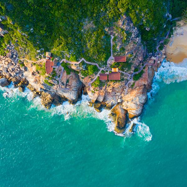 关于呆呆岛的“呆”字,可以作形容词,可以作名词,也可以作动词;“呆”可以作褒义,可以作贬义,也可以代表着一种向往,甚至是奢望。当我感叹中华汉字博大奥妙的同时,也为这岛名字起的拍腿叫绝。依照习惯,我依旧是先飞上一圈,在500米的空中随意俯瞰,寻找有趣的目标,哪怕海风有点大。这是一片被翡翠环绕的小岛,呆呆岛是其中的一小环,一块白云飘过就能遮住卷走那种。呆呆岛是一处刚开发没多久的海域,长长的海岸线被划分为不同的主题,每一处放在市面上,都可以被当做“网红打卡地”,而且由于没有拥挤的人潮,能让你独享这片空间尽情发呆。苏格拉底不承认他有讲过:没有厉害的照片发朋友圈,那旅行就等于白去了,而呆呆岛就能彻底让你摆脱“拍照五分钟,排队两小时”的命运。沙滩上摆有各种少女心的道具,迎着海景随手一拍都是大片,我们这一行人自然是不会错过的。铭红同学应声登场,这么长的腿,不蹬三轮可惜了,黑豹看了都想给她一双振金腿儿。我只想说这逆天的大长腿,天生就适合海岛,走在沙滩任意角落都是一道亮丽的风景线,宛若成了呆呆岛的形象代言人。大部分人都有一个幻觉,认为只要换个环境,就会有诗和远方,在我的理解里这是经不起推敲的,我们需要的只是在旅行中暂时给自己放个假,发个呆,轻松下来理清方向,只为回去后更好的起航,正如此时此刻,从早呆到晚,蓄足满满的能量。下午的光线,渐渐开始变得柔和,呆呆岛也变得的五颜六色丰富起来,仿佛身处彩虹之中,我也在这会儿拍下了此行最爱的一副画面,令我觉得整个《QQ空间伤痕文学精选》都配不上它。结识小布一家有四年零九个月了,也算是见证了爱情结晶小小布的出生和成长,几次同行的路上我全程都在花式吃狗粮,正如此时此刻,让海风都夹杂着一股腌黄瓜的味道,酸酸的……何以解酸?唯有gun远约妹子拍照,情人崖是呆呆岛眺望海岸线与欣赏夕阳的好地方,沿着右手边的木栈道拾级而上,没几步就登顶,高处的视角果真不一样,像我这种腿短的人,只能借助外物来感受“高海拔”处的空气与风光了。有人说北上广的夜晚才是精彩的,你不能睡着,否则就辜负了那些美味的宵夜和热闹的酒肆;呆呆岛的夜晚一样是美好的,你也不能睡着,但不是叫你释放欲望、搅拌荷尔蒙,而是在帐篷里枕着海浪发呆,感受夜色失焦星河滚烫。