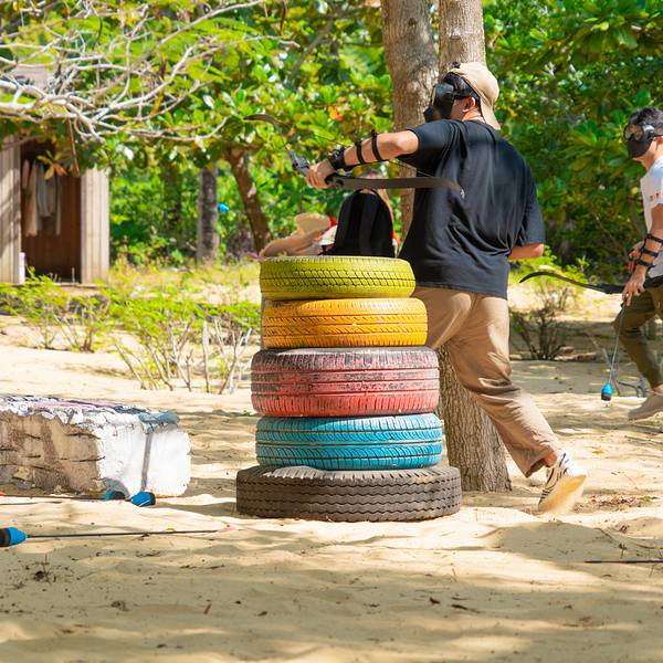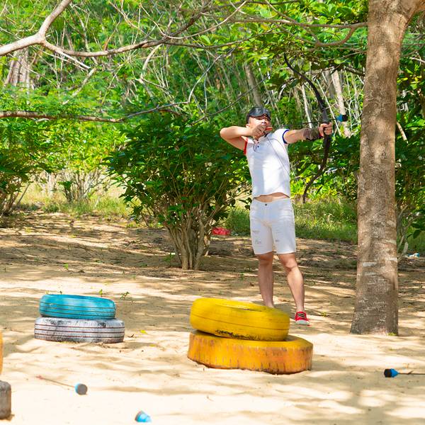 午餐有烧烤饮料螃蟹粥然后马不停蹄去玩摩托艇香蕉船冲浪射箭