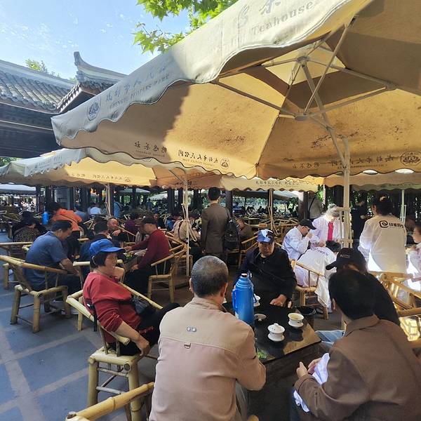 来成都不到茶铺喝茶,就不算来过成都。成都最出名的两家,一家是文殊院里面的茶铺,另外一家就是人民公园里面的鹤鸣茶社了。现在鹤鸣茶社的游客也非常多,都来感受成都的慢生活,殊不知,成都所有事都可以在这谈好,隔壁刚刚拍板C轮融资10个亿,旁边又签了3000万的合同,后面那桌又在说昨天番茄3块,今天就5块了~