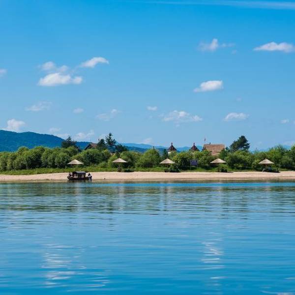叆河是满语“叆哈”的谐音,即琉璃或明亮清澈之意,叆河是鸭绿江上游的重要水系,发源于宽甸县西北部摩天岭,经叆阳、石城、大堡、草河、边门、东汤及丹东振安区,在宽甸虎乡注入鸭绿江,全长198公里。不需要沿河走过198公里,在凤城的叆河风景区,便可以看遍叆河的风情。 叆河风景区,原本荒芜的绿地,如今已经成为一座装载着梦想的庄园,绚烂绽放,只等有心人采撷。叆河风景区,正慢慢的,变成梦中的模样。 在叆河,可以游玩一整天,但更适合惬意的度假,让时光停留。景区已开放的区域并不是特别大,若只是走马观花,一个下午便能搞定。可是,这样的地方,最适合停下脚步,什么也不想,只是放空自己,回归自然,同时,也享受生活。