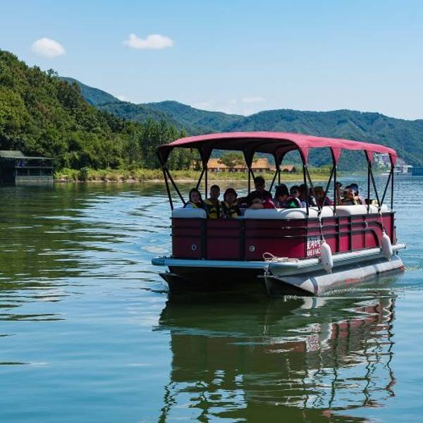 这里景色很美,建设很好,有河围绕景区,还有沙滩游船,乘船绕山环境真是醉了,五一节去这里到处都是嫩绿色,山景美极了,景区里有各种鲜花🌸盛开,值得一看!