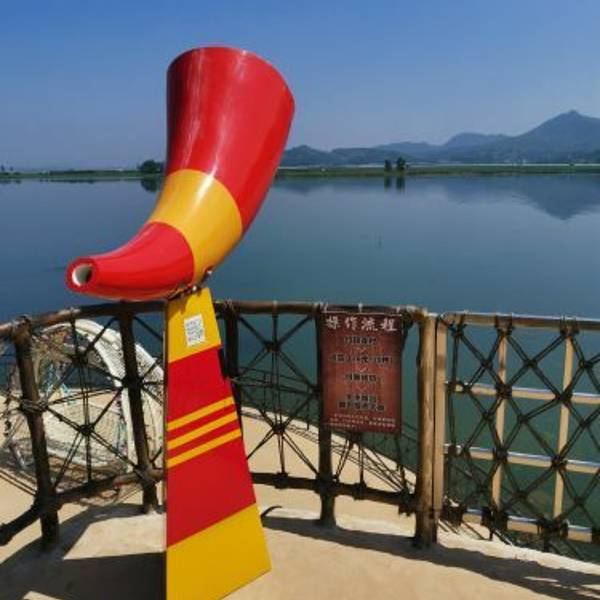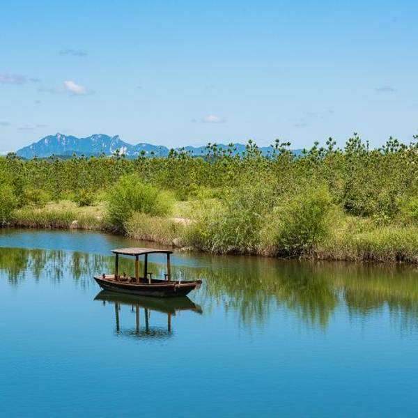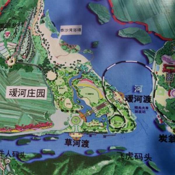 建设很好,有河围绕景区,还有沙滩游船,乘船绕山环境真是醉了,五一节去这里到处都是嫩绿色,山景美...