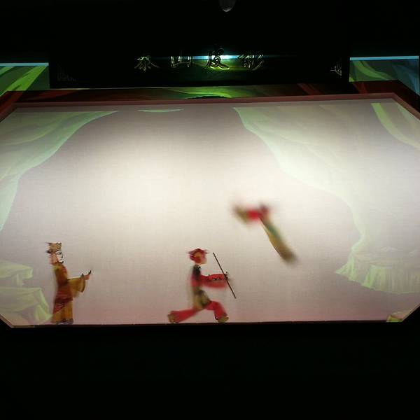 入眼便是满满的中国味道“脑里想着词儿、嘴里唱着曲儿、手里舞着人儿、脚下踩着锤儿”是泰山皮影的绝技