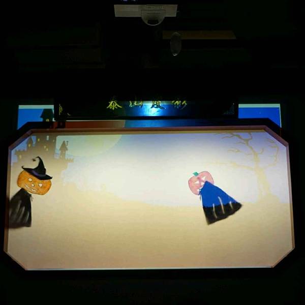 三幕是让观众体验的节目,临近万圣节让大家拿着鬼怪的皮影也来到幕布后面,跟随者音乐,让皮影动起来!没有对话声浪极强,看着小鬼们脑袋瓜子和身子飞着飞着都分家了,大家都觉得搞笑极了,欢乐的气氛中剧目表演完毕,大朋友们小朋友们都在幕后表演的不亦乐乎,真的是寓教于乐了。