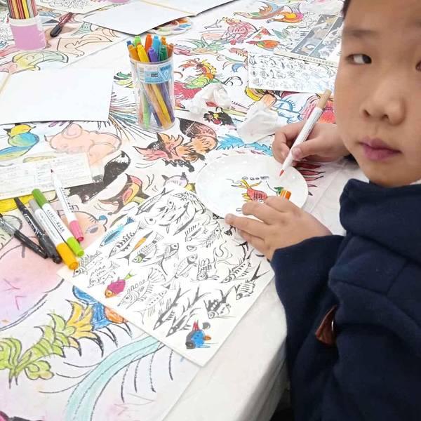 非常开心带萌娃参加皇城根下的探秘活动,来到永新华韵韩美林艺术馆,往瓷盘马克杯上做画,既能充分发...