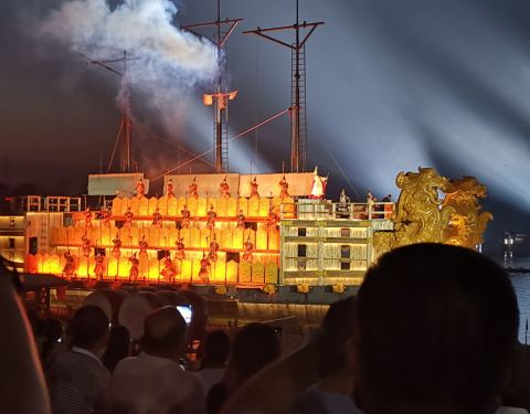 美的不要不要的,无人机,烟火,皇家战船,还有唯美的桃花船,震天响的大鼓! 2018-12-28 08:42