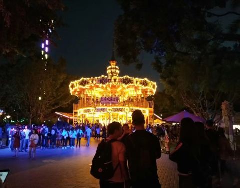 广州欢乐世界里的这个梦幻转马非常的大啊,晚上来这里玩比较的有意思这里天黑了会开灯,真的感觉在童...