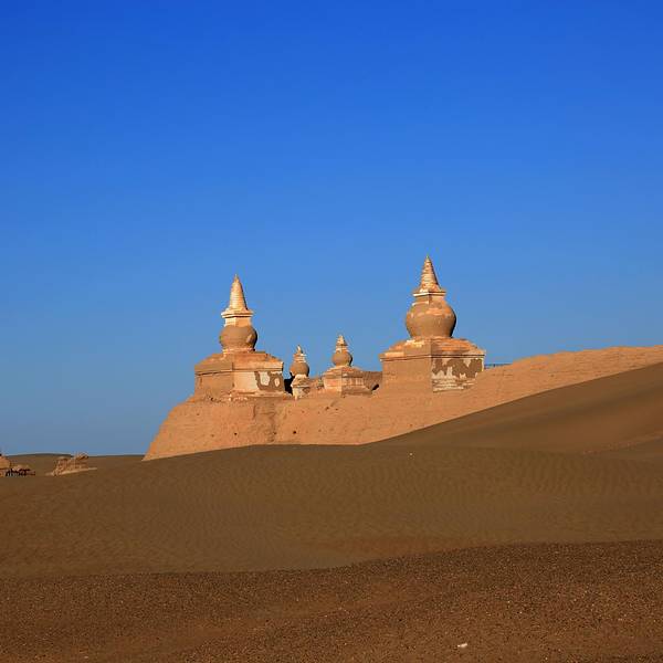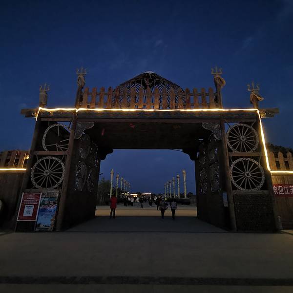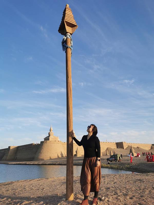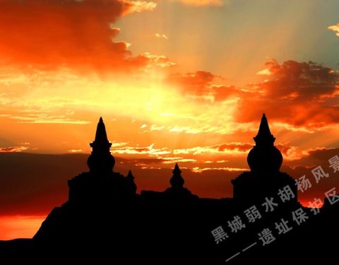 金沙岛,宛在水中央。弱水淘沙,沙上生树,树生水止,水止洲浮。蔚为大观,蔚为奇观。穿过弱水六桥来到凤凰林,这里有一个长河落日观赏点,傍晚站在这里可以体会"大漠孤烟直,长河落日圆"的景色,落日前要赶往怪树林,这次只能遗憾错过,上一张景区宣传图吧!长河落日在凤凰林搭乘景区摆渡车,便可到达黑水古城。是的,你没听错就是鹧鸪哨寻找雮尘珠的黑水城,古城属于人工后建的一个景点,模仿还原曾经的黑水城,每个房子基本都是商业店铺,在这里可以驻足休息,也可登上城墙远眺。穿过古城,来到东门,可以坐车前往怪树林或黑城遗址,注意看清指示牌,不要上错车。黑城遗址这才是真正小说中提到的西夏黑水城。基本已被风沙掩埋风化,只剩下残破的城墙和几座佛塔。回到入口,所有的巴车都前往最后一站——怪树林。林如其名,近2000亩枯死的胡杨以各种狰狞的姿势“陈尸”遍地,放眼过去一种“无处话凄凉”的无奈之情悠然而生。沙漠无情的吞噬着一切,即便死亡,仍要用残破的身躯固着沙。