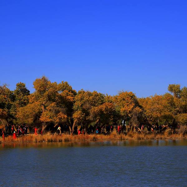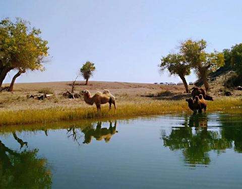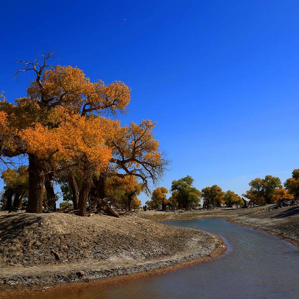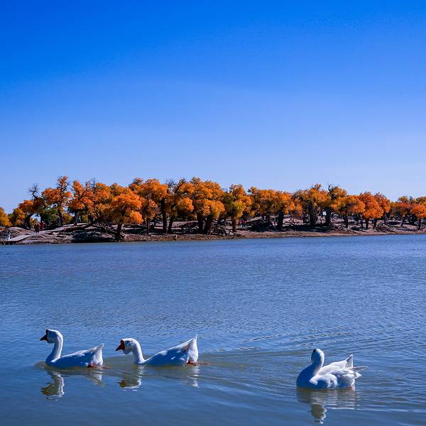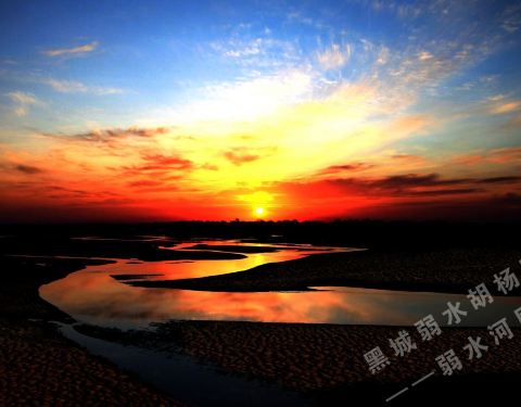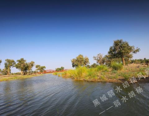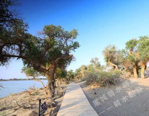 在弱水河的两侧,生长着"醉美胡杨林"之称的弱水胡杨林。弱水三千,只取一瓢,赋予了这片胡杨爱情专一的主题,又被赐予"胡杨百媚生,陷于弱水清"的千古柔情,5000亩若水胡杨和弱水河畔交相辉映,浮光跃金,美轮美奂。