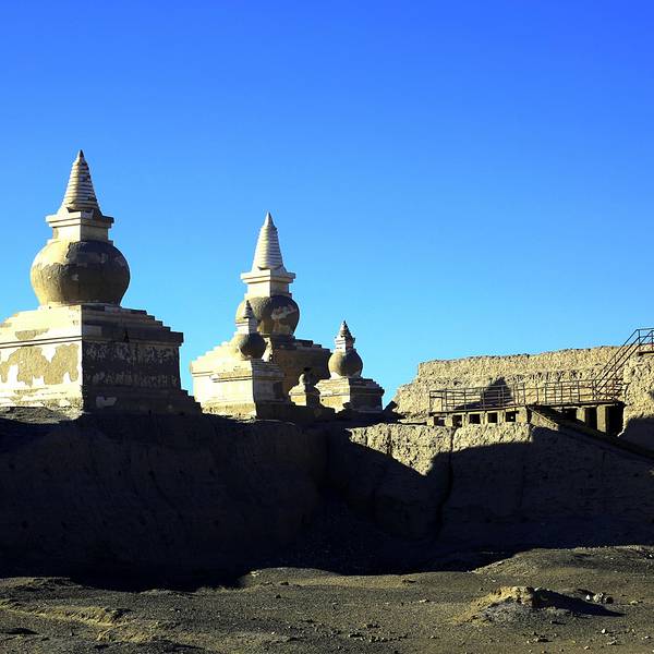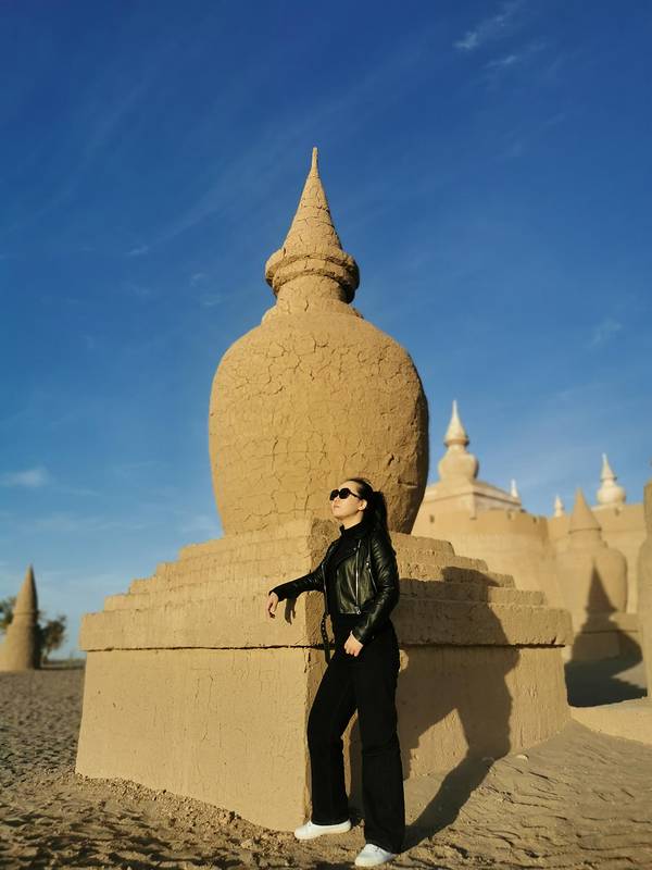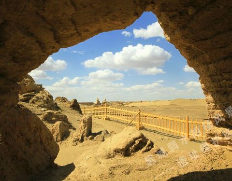 门票180元+20元车票,捆绑售卖,景区真的很大,一定要坐摆渡车的。景区网络也很差,准备点现金,关键时刻还得硬通货。黑城游览图午饭后,托民宿的老板帮忙联系了包车,三个景区400块,这个价位还是可以接受的。从达来呼布镇到黑城有半个小时的车程。看惯了城市的繁华,荒凉的戈壁也是另一种美。